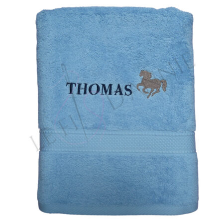 La serviette est brodée avec un prénom et un cheval, vous choisissez la taille, la couleur de la serviette et du fil ainsi que l’écriture du prénom. Possibilité d’indiquer la couleur du cheval à la fin de la commande.